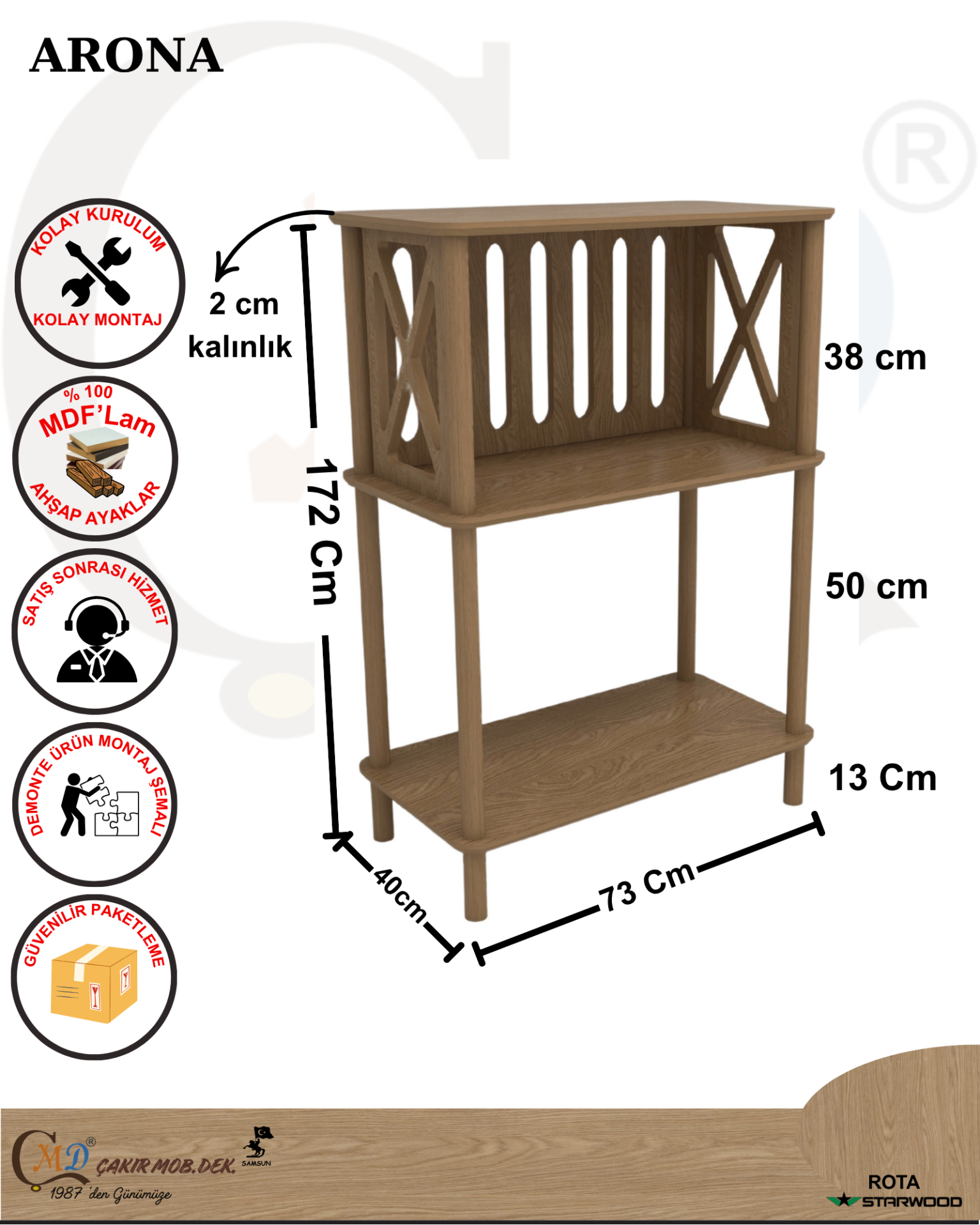 ARONA Çok Amaçlı 3 Katlı Ahşap Raf –Mutfak, Balkon, Ofis, Otel Kullanımına Uygun Organizer CMD ÇAKIR MOBİLYADEKORASYON SAMSUN