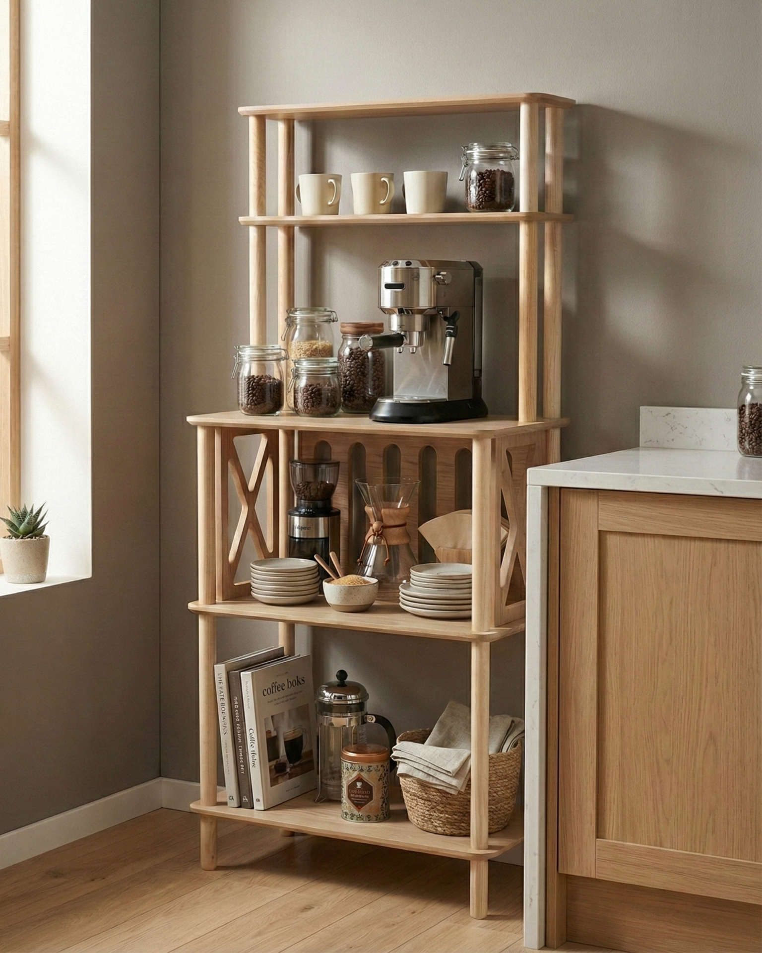 ✔️ Kahve köşesi + fırın köşesi + saklama alanı bir arada