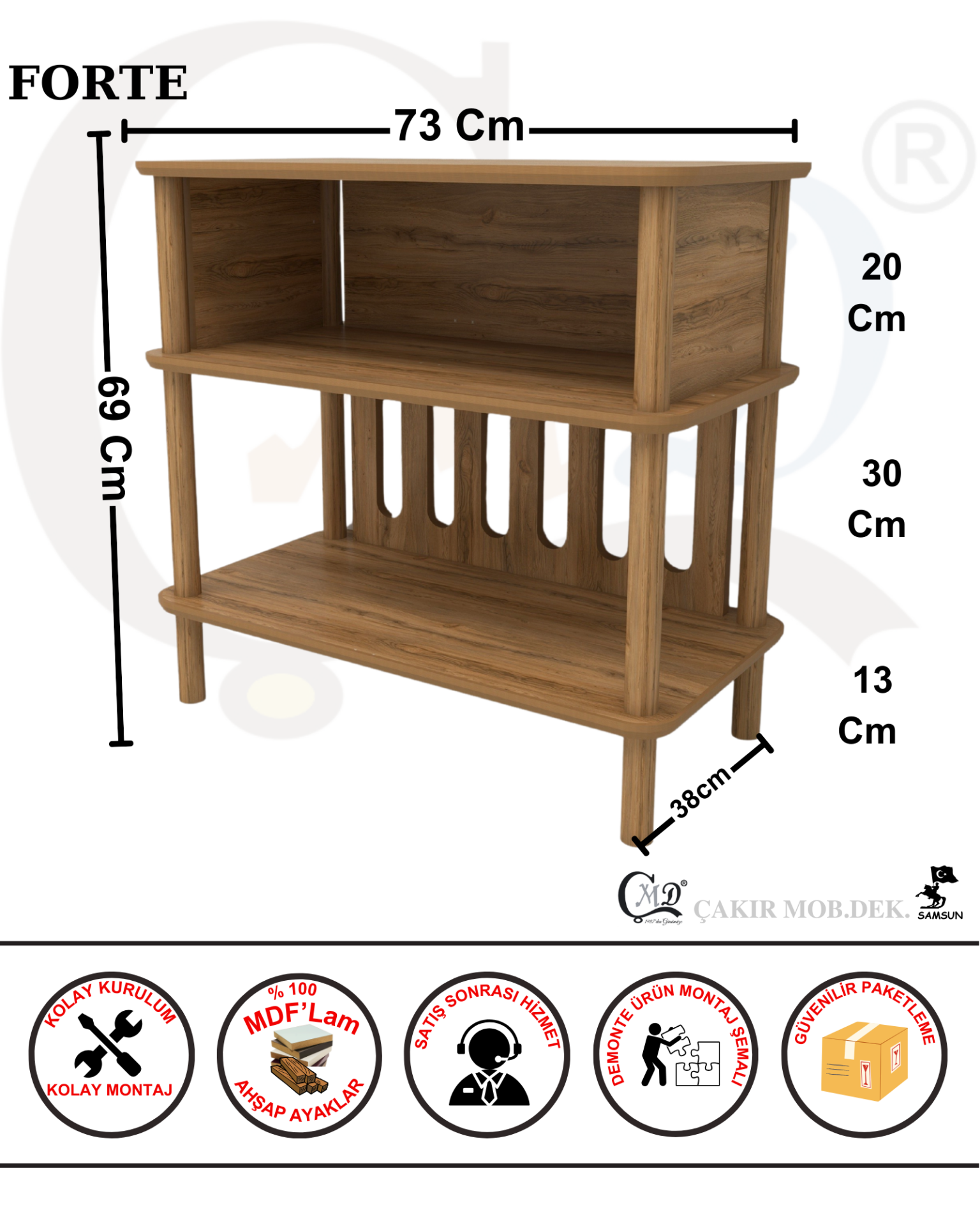 - - Dayanıklı MDF ve ahşap malzemesiyle uzun ömürlü kullanım sunuyor.