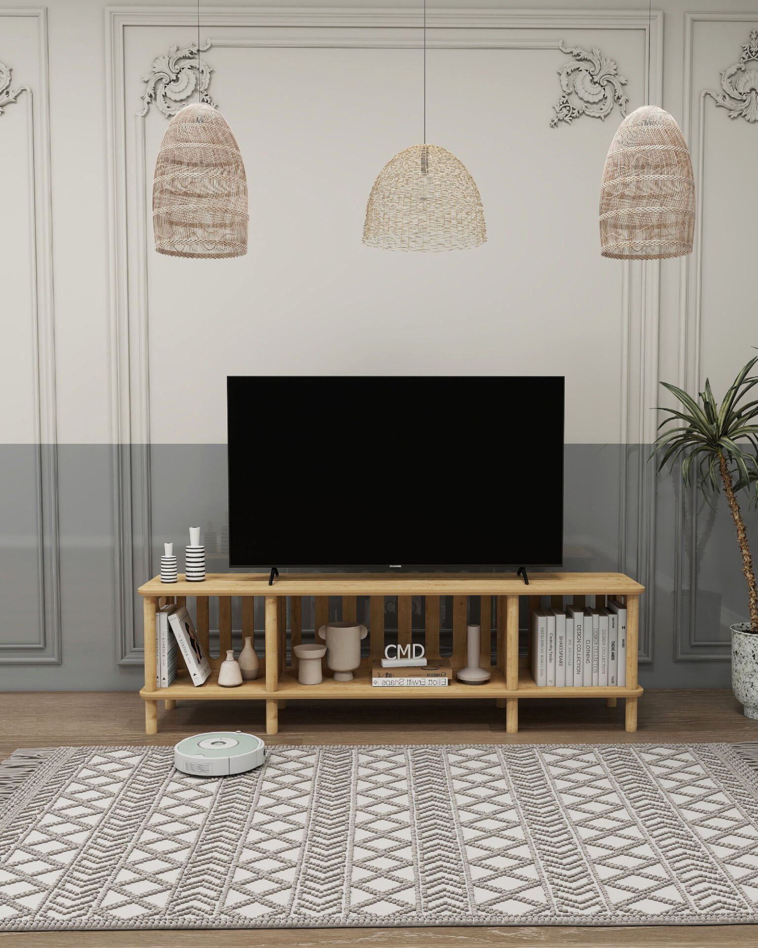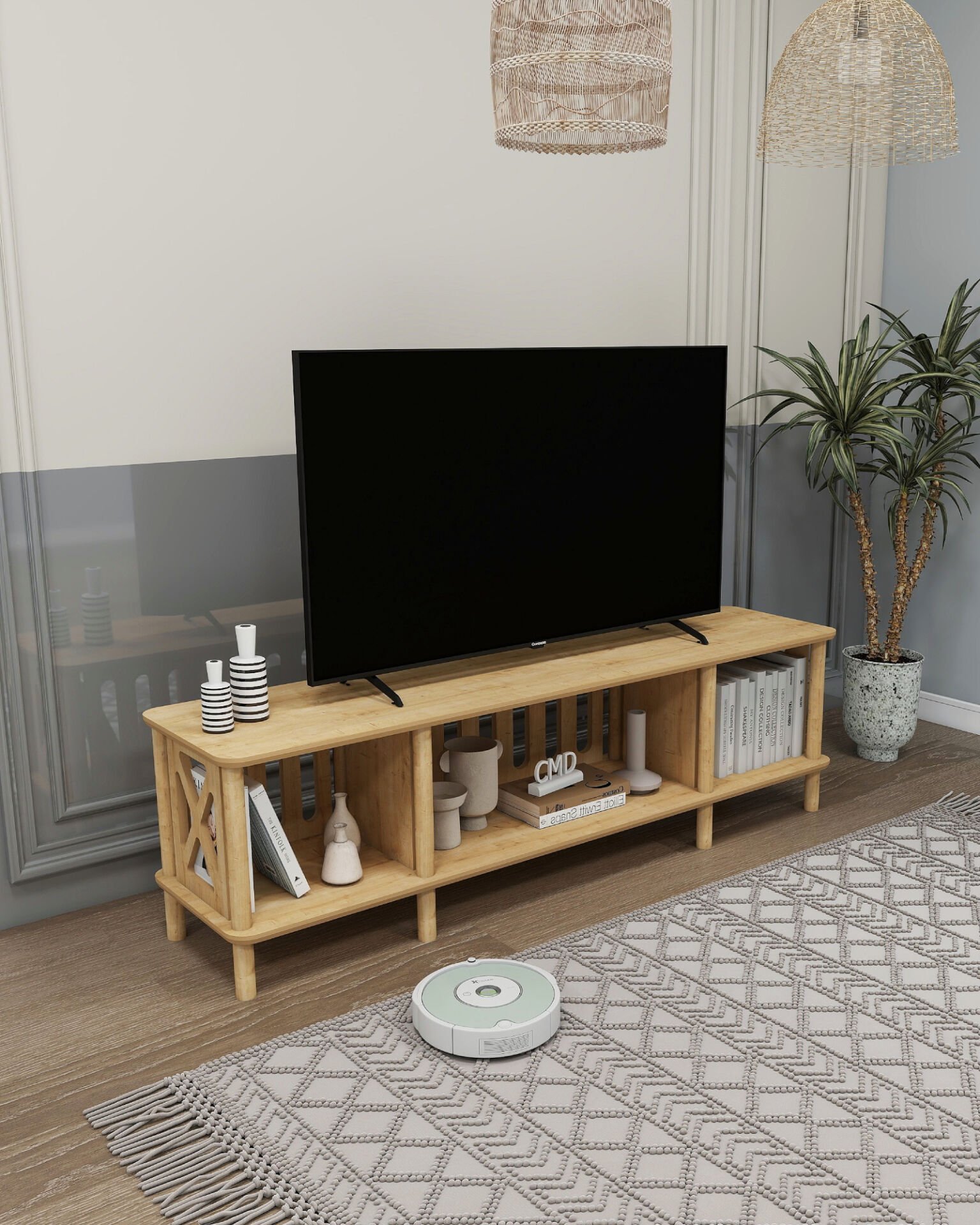 CMDWOOD ONTANO Tv Ünitesi 160cm Mdf'lam Ve Ahşap Tasarım -salon Ünitesi - Oturma Odası- Televizyon Odası