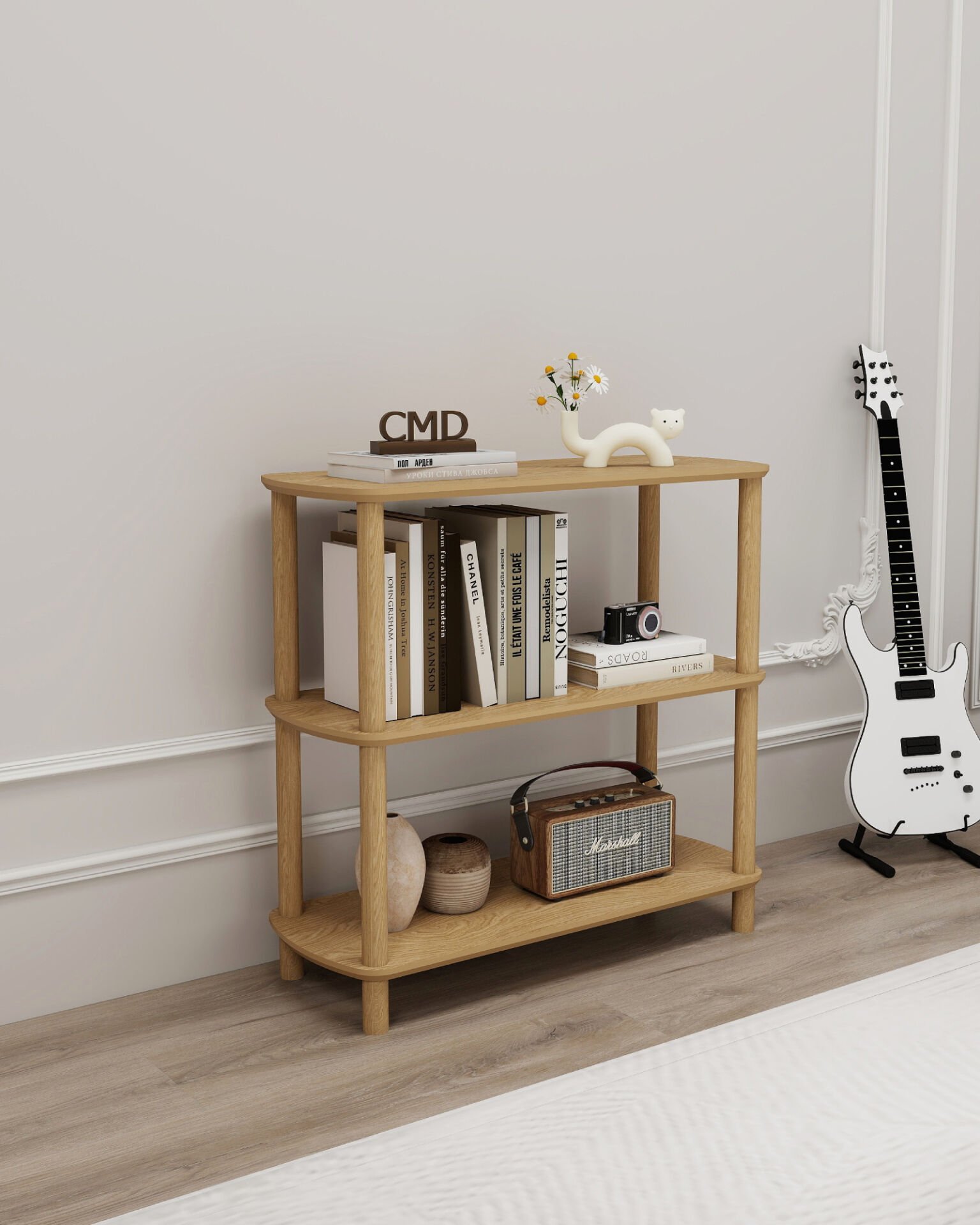 ROSA 3 Raflı Kitaplık, sade ve modern çizgileriyle hem şıklık hem de işlevsellik sunar. 80 cm genişliğe sahipbu kompakt kitaplık; salon, çalışma odası, çocuk odası, ofis, giriş holü veya mutfakta çok amaçlı raflı dolap olarak kullanılabilir.