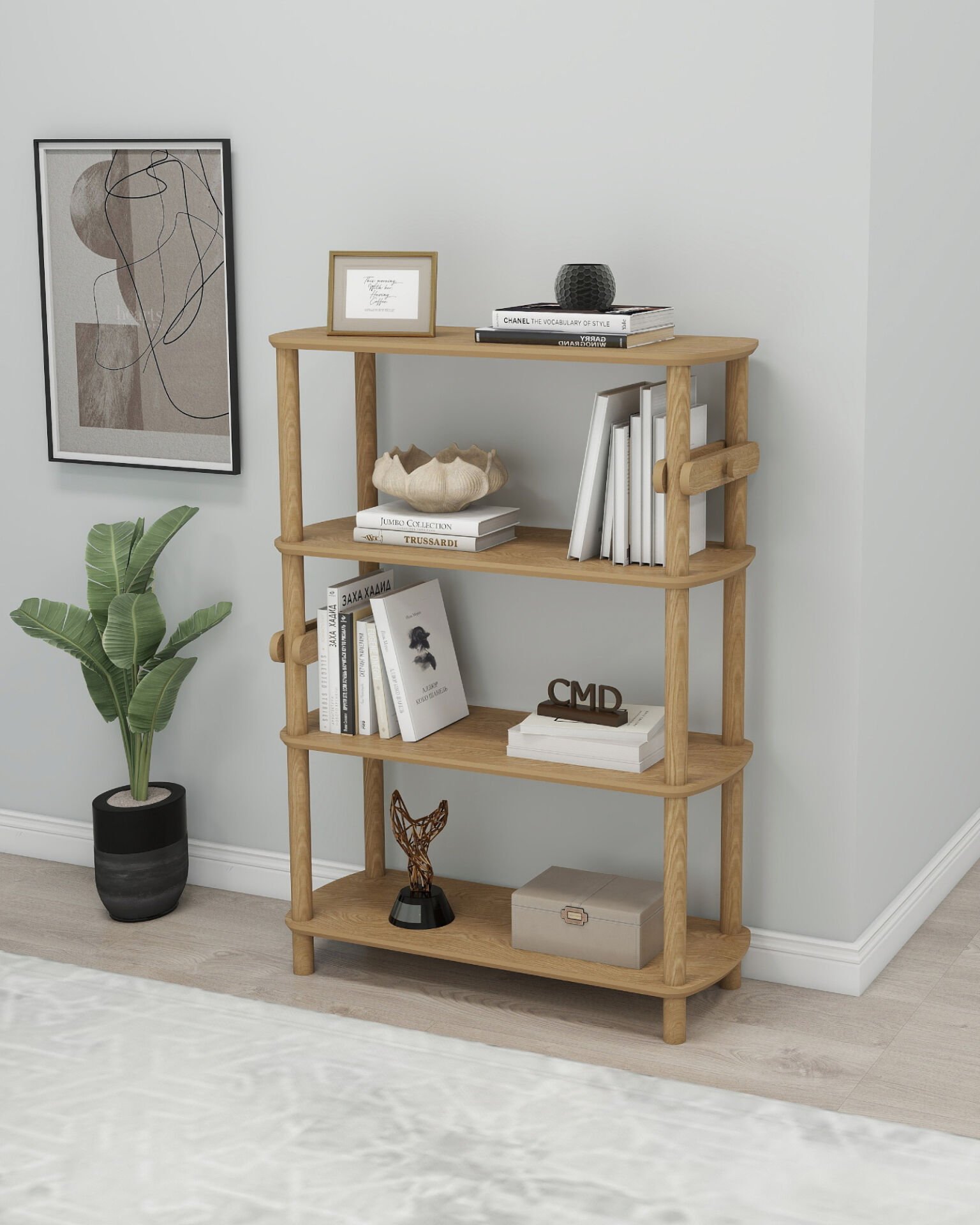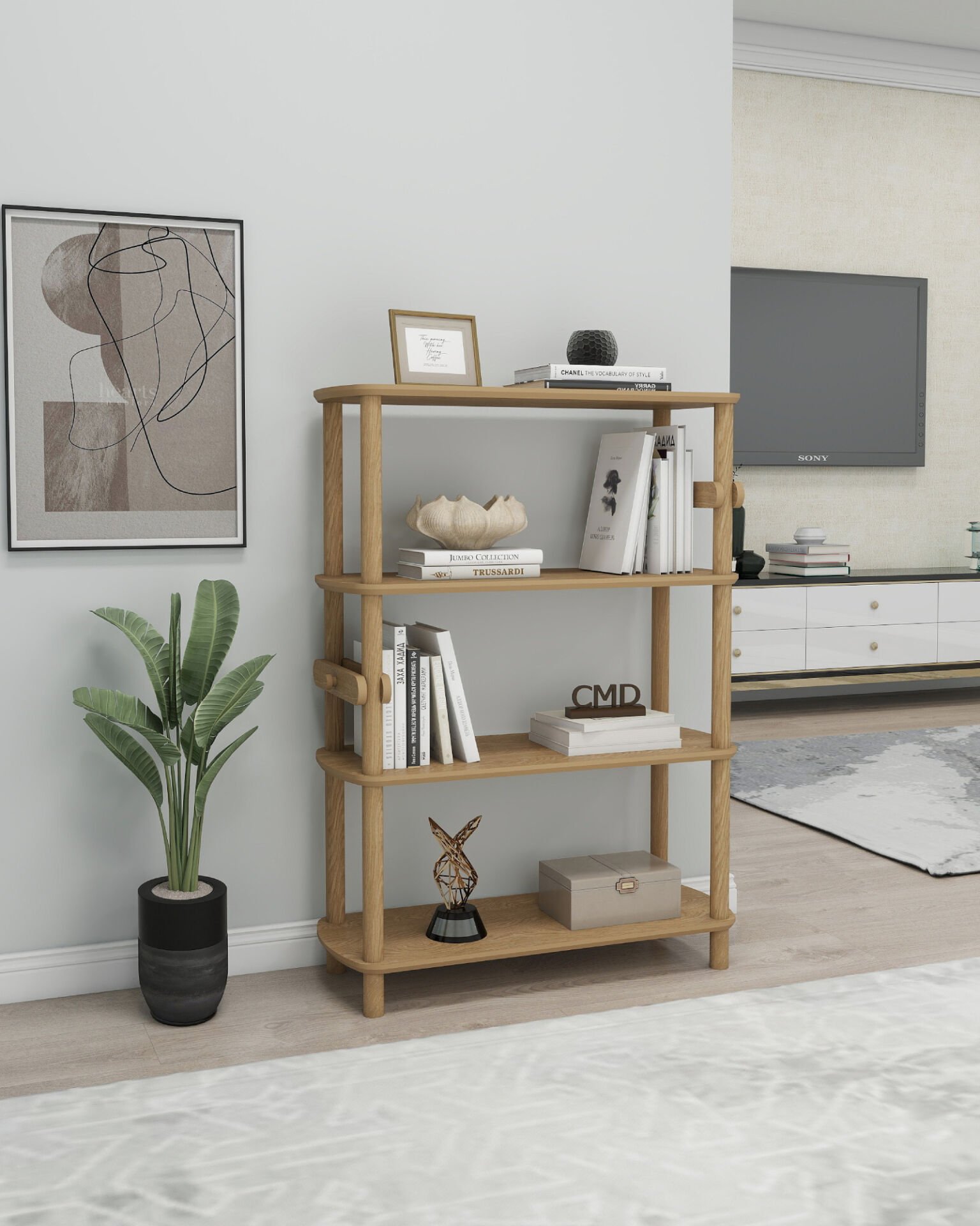 CMDWOOD ROSA : 4 Raflı Kitaplık – 112 cm Yükseklik – MDF Lam Gövde ve Ahşap Ayaklı – Modern & Şık Tasarım