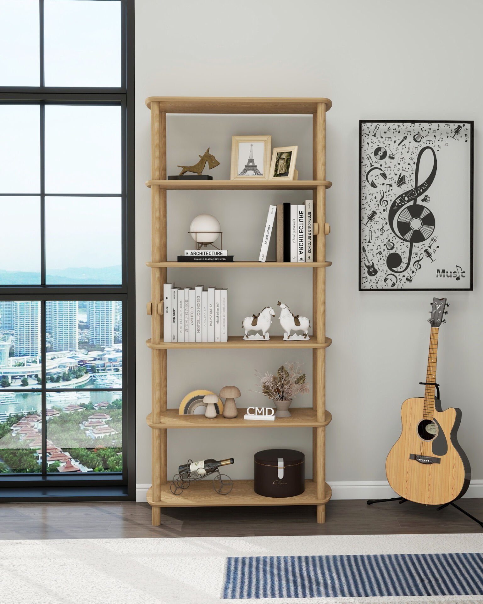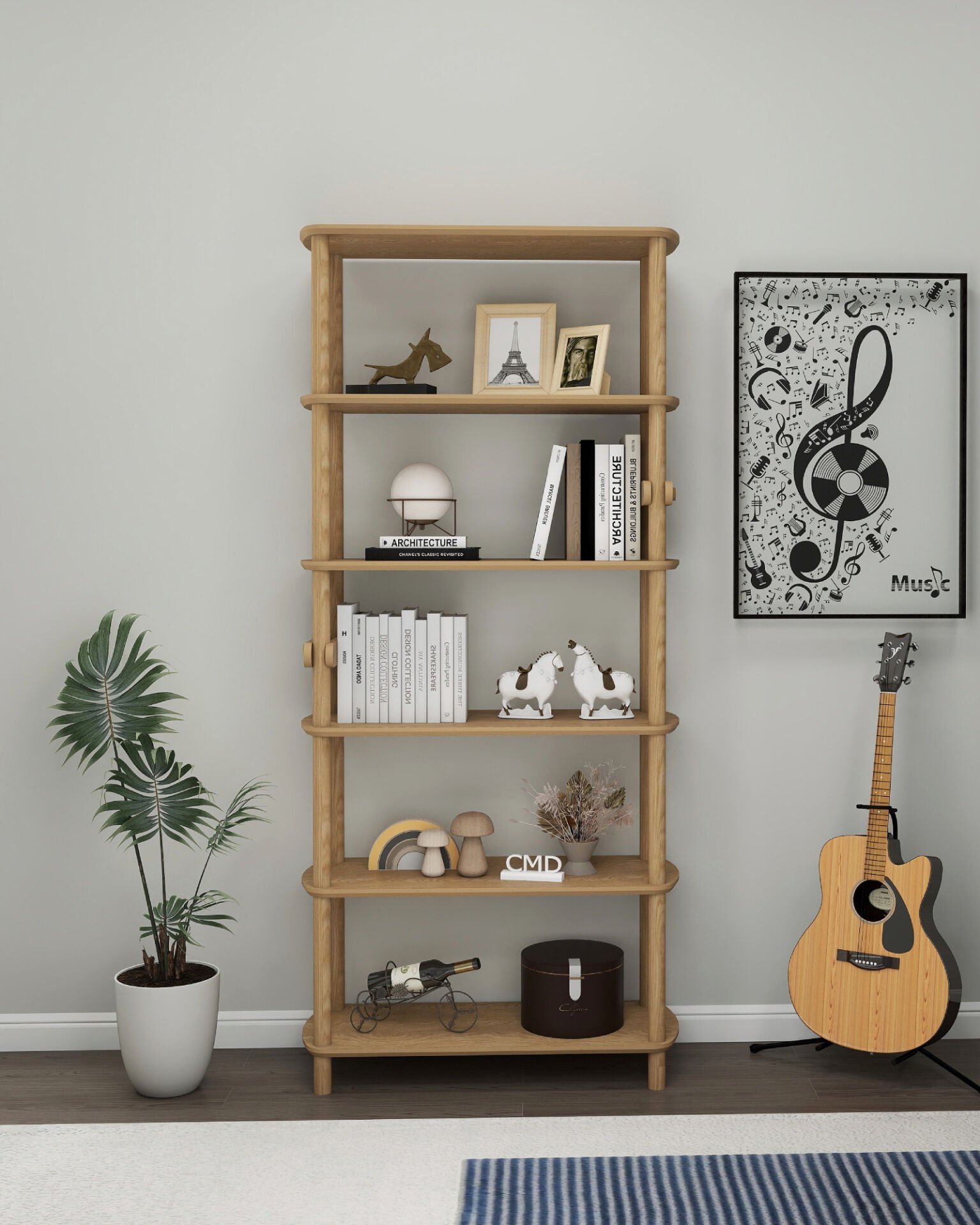 ROSA 6 Raflı Kitaplık – MDF Lam Gövde, Ahşap Ayaklı – 174x80x30 cm | Modern & Minimalist Tasarım
