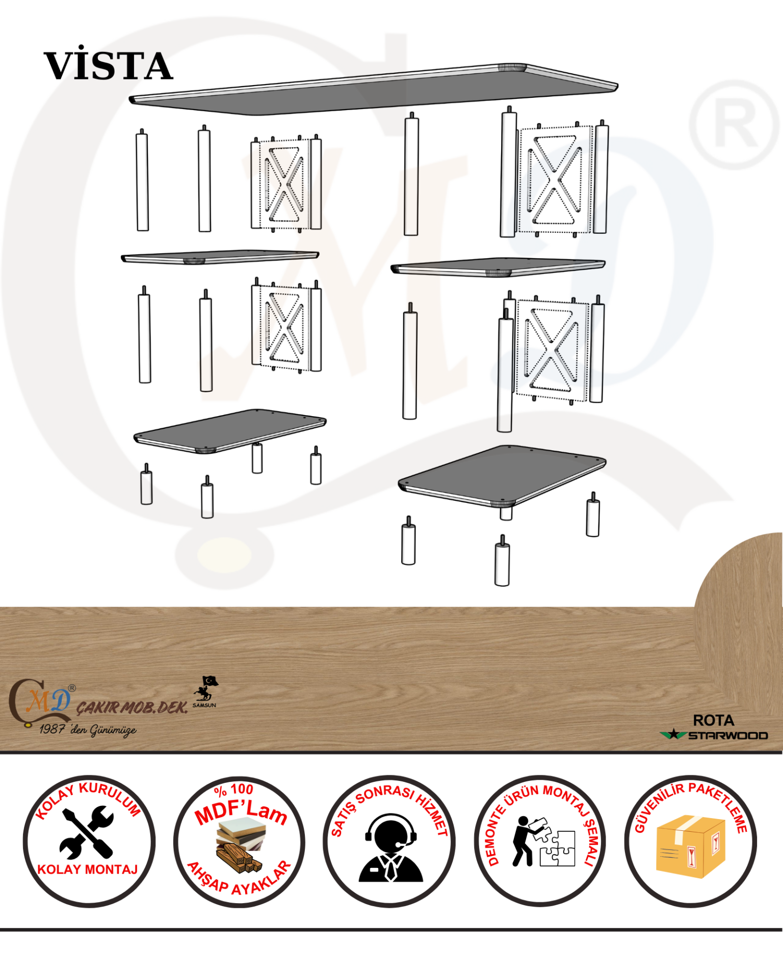 Vista Çalışma Masası – MDF & Ahşap Ayaklı | 4 Raflı | Minimalist & Fonksiyonel Tasarım