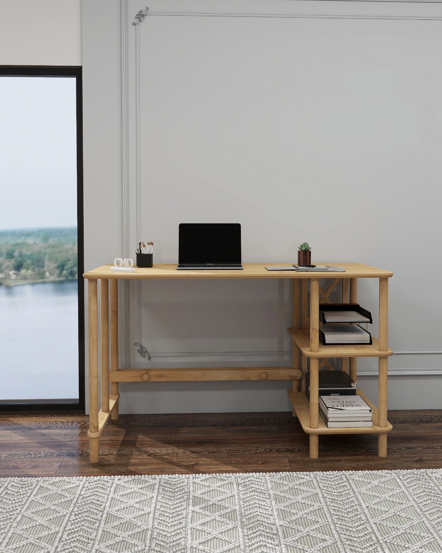 CMDWOOD Vivace Çalışma Masası Mdf Ve Ahşap Zarif Tasarım 2 Raflı - Ofis Masası -oyuncu Masası -ders Masası